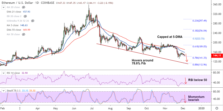 ETH/USD is extending downside for the 5th straight session, bias remains bearish.
