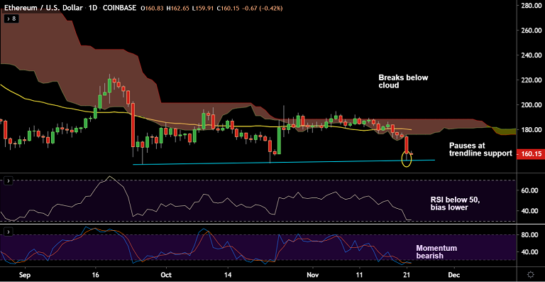 ETH/USD is consolidating previous session's slump, bias strongly bearish.