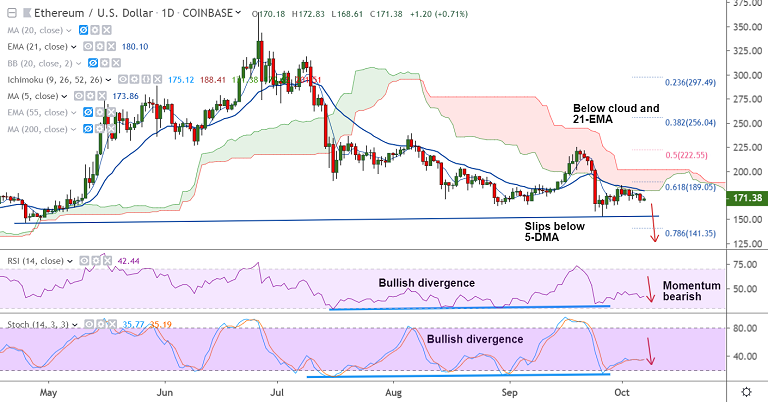 ETH/USD was trading largely rangebound on the day at 171.33 at 07:00 GMT.