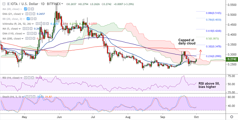 IOT/USD was trading 4.21% higher on the day at 0.2767 at 11:15 GMT.