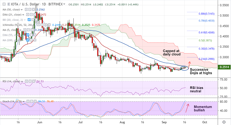 IOT/USD extends range trade below cloud resistance, intraday bias is neutral to slightly bullish.