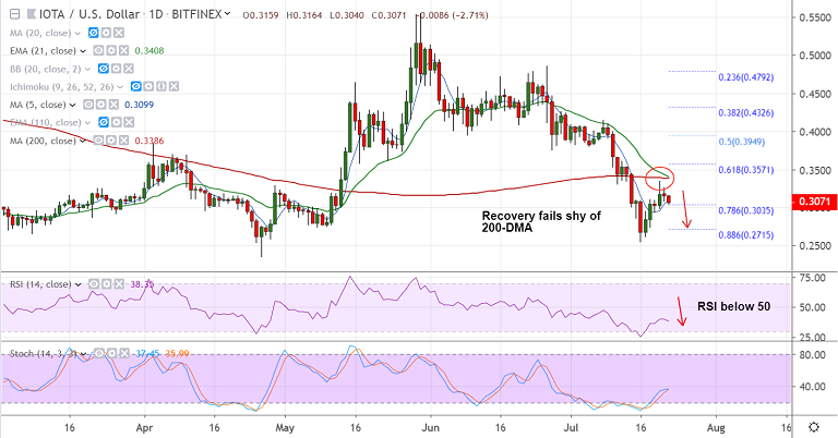 On the flipside, breakout above 200-DMA negates bearish bias.