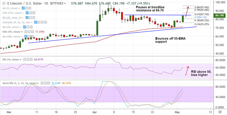 - LTC/USD spikes over 9% to hit 2-week highs at 84.67