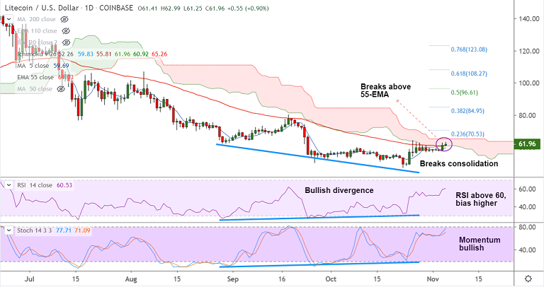 LTC/USD was extending previous session's gains, intraday bias turning slightly bullish.