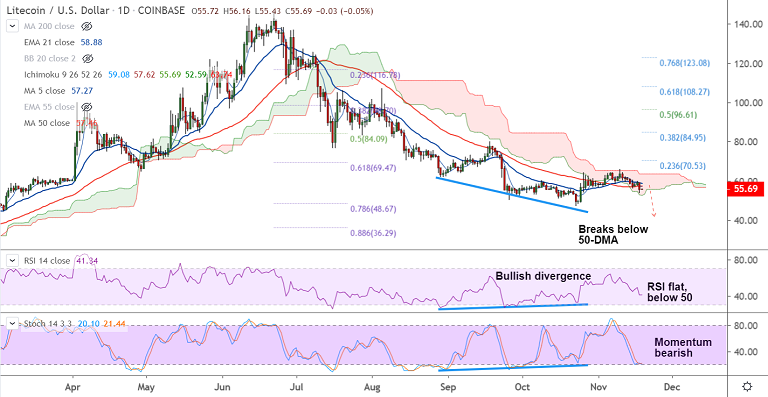 The pair has broken below 50-DMA support raising scope for further weakness.