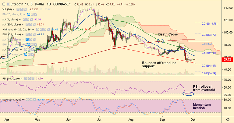 LTC/USD stuck in narrow range trades directionless above 5-DMA support.