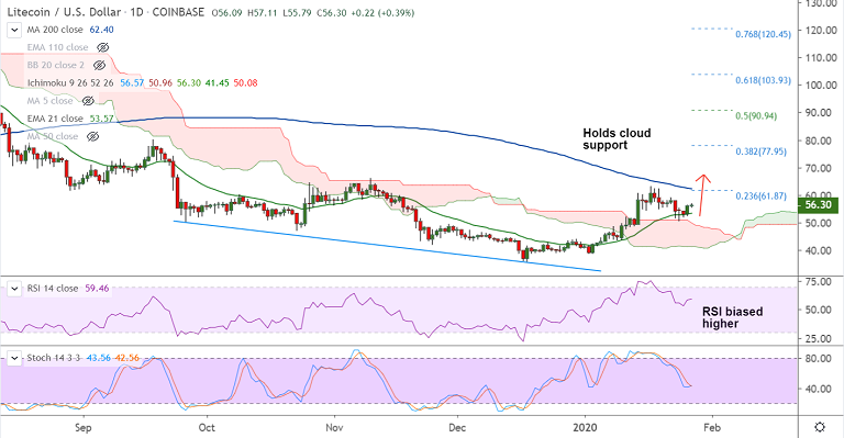 LTC/USD was trading largely muted on the day at 56.34 at around 09:35 GMT.