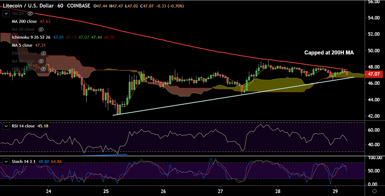 LTC/USD is extending sideways grind for the 2nd consecutive session, bias neutral.