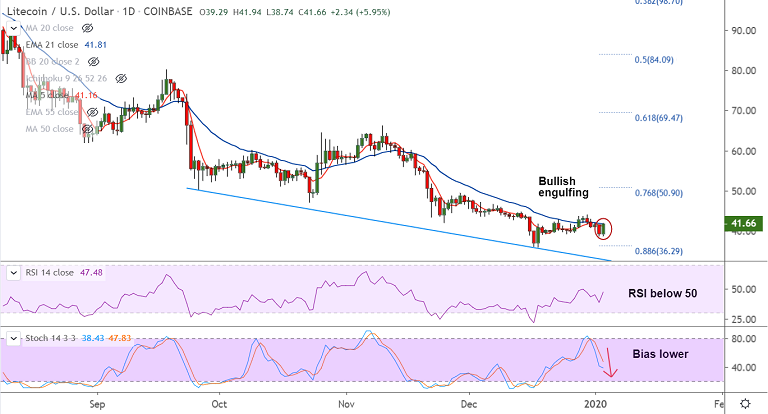 The pair saw a sharp reversal from session lows of 38.74 as Litecoin tracked Bitcoin higher.