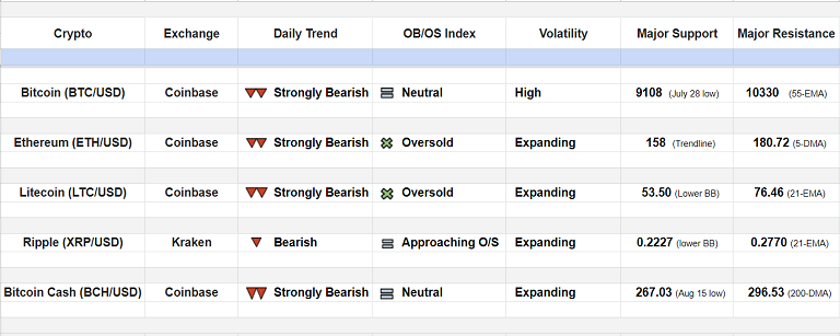 Major Cryptocurrency Daily Trend/ Technical Outlook