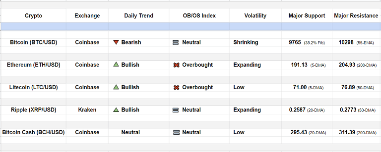 Major Cryptocurrency Daily Trend/ Technical Outlook