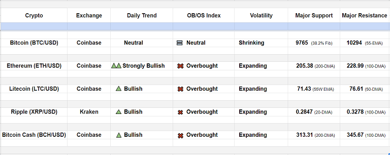 Major Cryptocurrency Daily Trend/ Technical Outlook