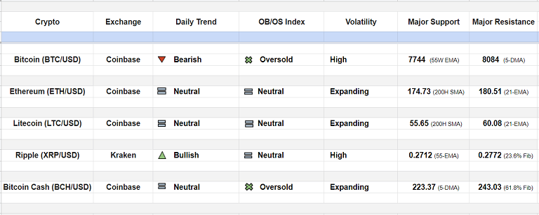 Major Cryptocurrency Daily Trend/ Technical Outlook