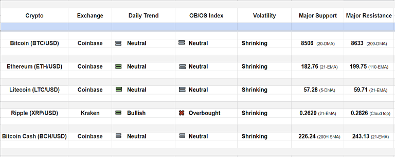 Major Cryptocurrency Daily Trend/ Technical Outlook