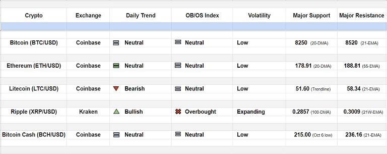 Major Cryptocurrency Daily Trend/ Technical Outlook