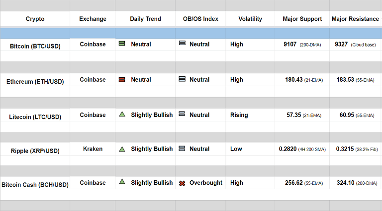 Major Cryptocurrency Daily Trend/ Technical Outlook