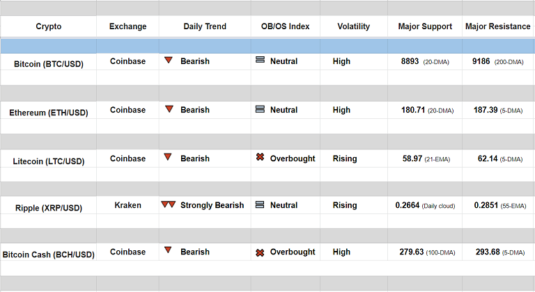 Major Cryptocurrency Daily Trend/ Technical Outlook