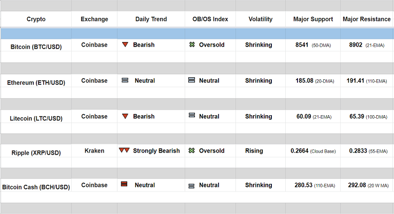 Major Cryptocurrency Daily Trend/ Technical Outlook