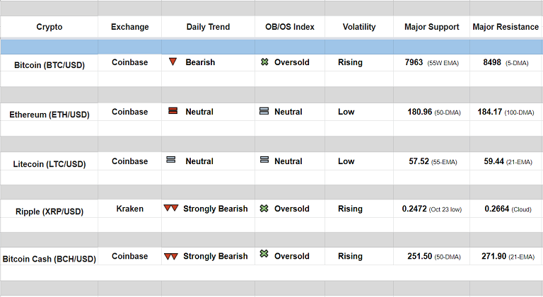Major Cryptocurrency Daily Trend/ Technical Outlook