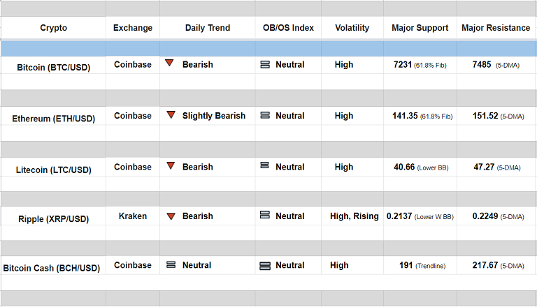 Major Cryptocurrency Daily Trend/ Technical Outlook