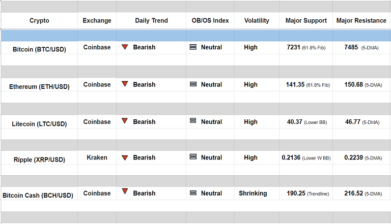Major Cryptocurrency Daily Trend/ Technical Outlook