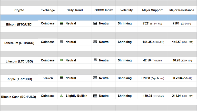 Major Cryptocurrency Daily Trend/ Technical Outlook