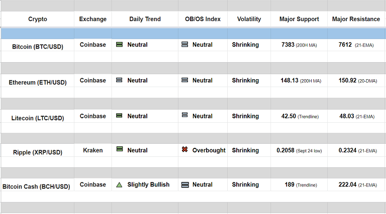 Major Cryptocurrency Daily Trend/ Technical Outlook