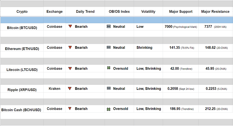 Major Cryptocurrency Daily Trend/ Technical Outlook