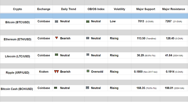 Major Cryptocurrency Daily Trend/ Technical Outlook