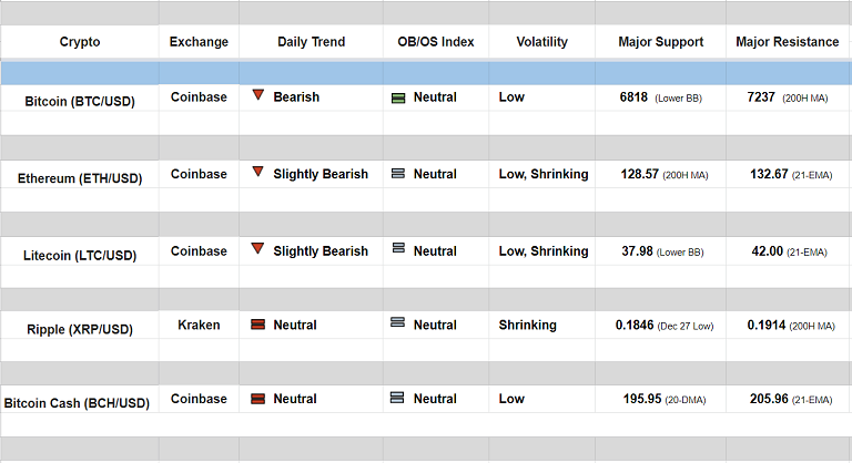 Major Cryptocurrency Daily Trend/ Technical Outlook