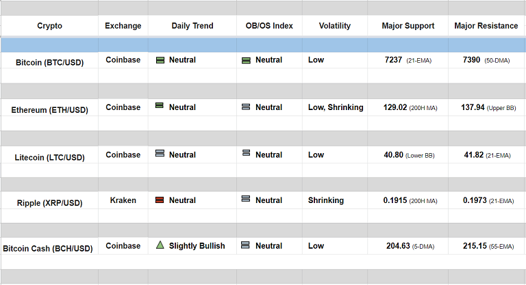 Major Cryptocurrency Daily Trend/ Technical Outlook