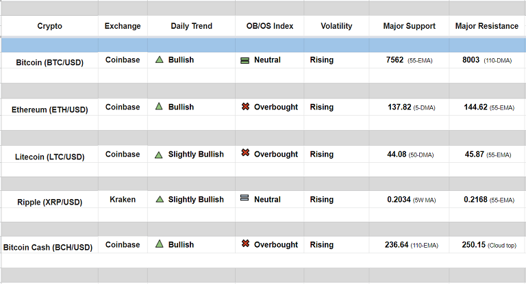 Major Cryptocurrency Daily Trend/ Technical Outlook
