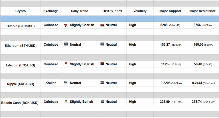 Major Cryptocurrency Daily Trend/ Technical Outlook