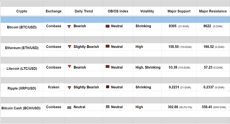 Major Cryptocurrency Daily Trend/ Technical Outlook
