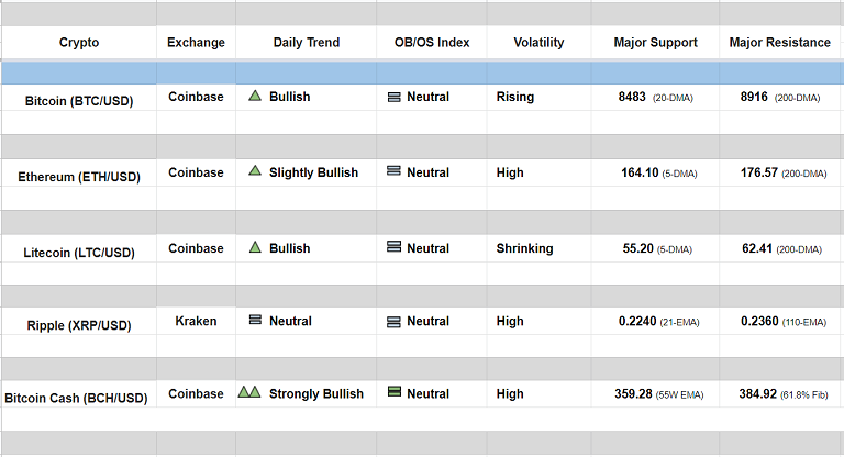 Major Cryptocurrency Daily Trend/ Technical Outlook