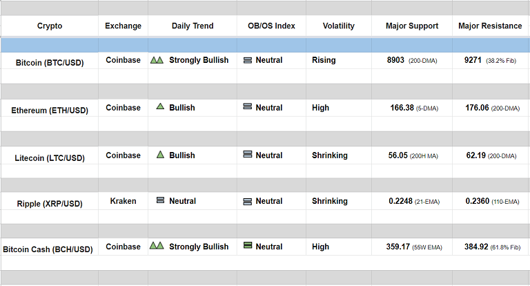 Major Cryptocurrency Daily Trend/ Technical Outlook