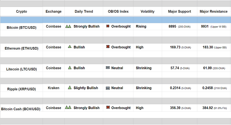 Major Cryptocurrency Daily Trend/ Technical Outlook