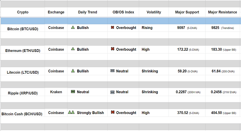 Major Cryptocurrency Daily Trend/ Technical Outlook
