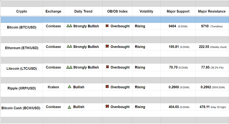 Major Cryptocurrency Daily Trend/ Technical Outlook