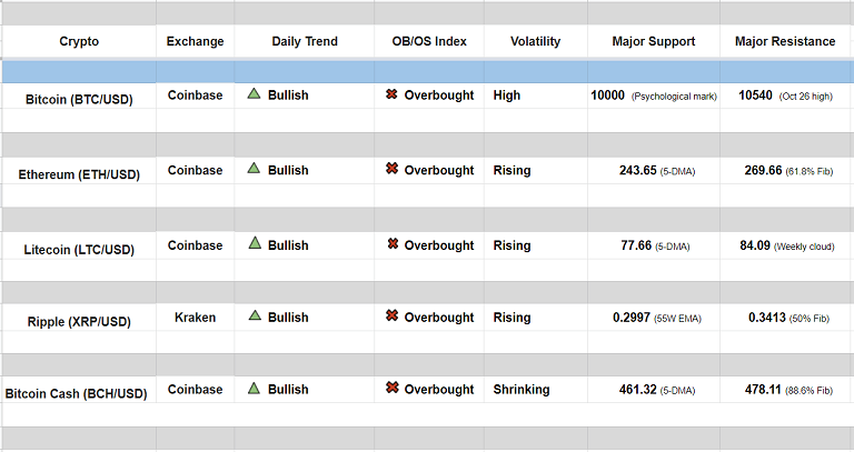 Major Cryptocurrency Daily Trend/ Technical Outlook