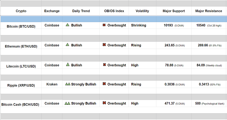 Major Cryptocurrency Daily Trend/ Technical Outlook