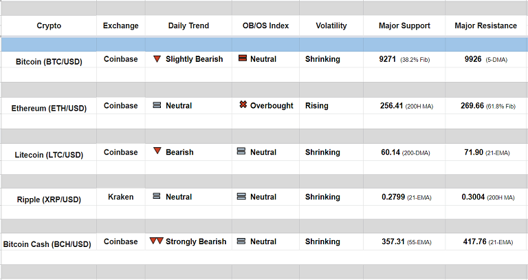 Major Cryptocurrency Daily Trend/ Technical Outlook