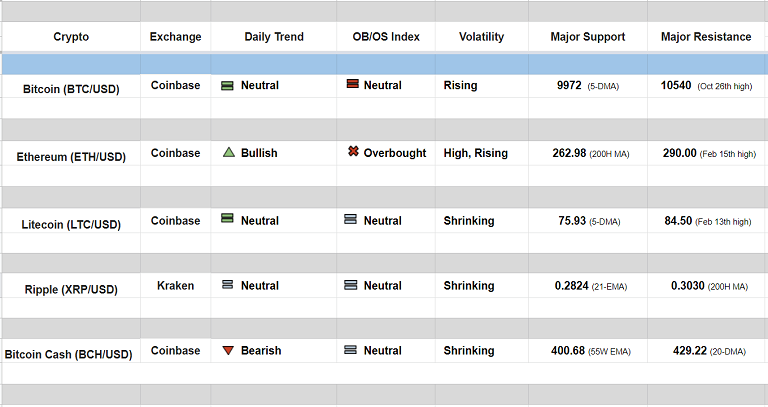 Major Cryptocurrency Daily Trend/ Technical Outlook