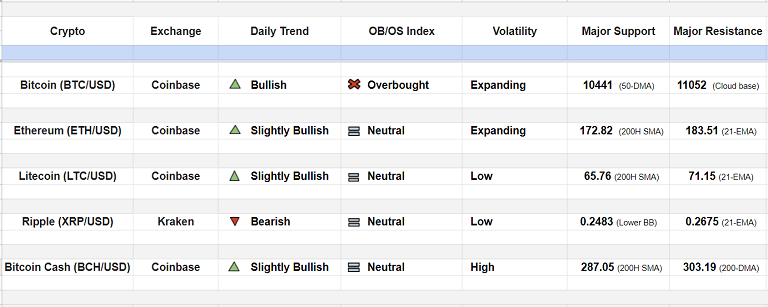 Major Cryptocurrency Daily Trend/ Technical Outlook