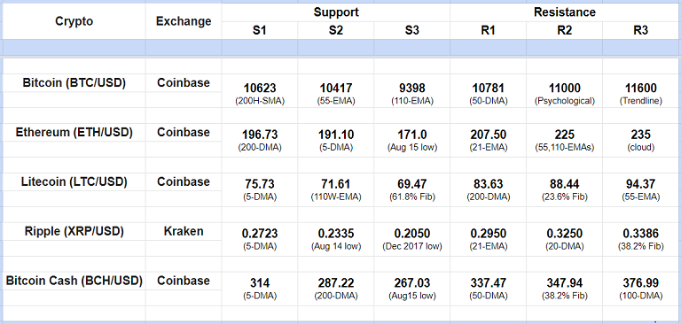 Major Cryptocurrency Intraday Support Resistance Levels