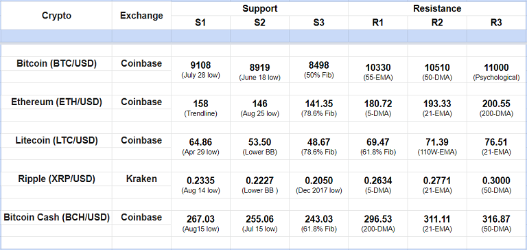Major Cryptocurrency Intraday Support Resistance Levels