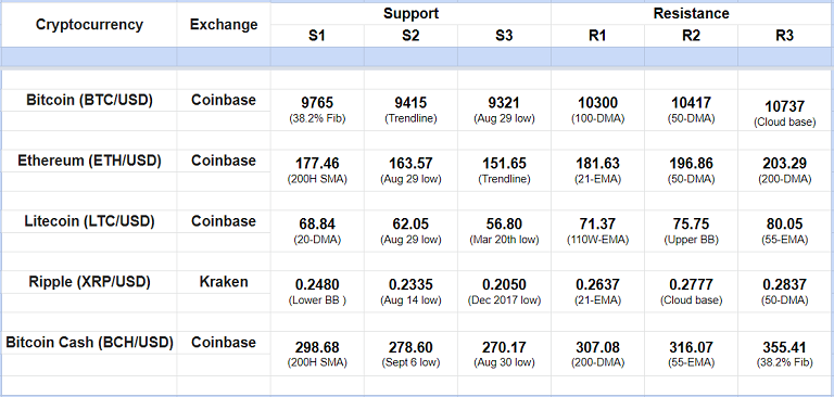 Major Cryptocurrency Intraday Support Resistance Levels