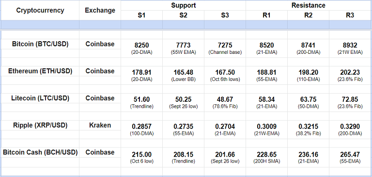 Major Cryptocurrency Intraday Support Resistance Levels