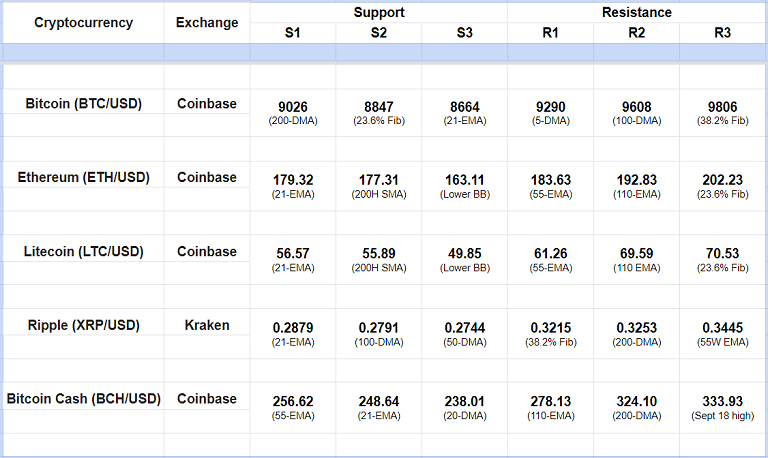 Major Cryptocurrency Intraday Support Resistance Levels