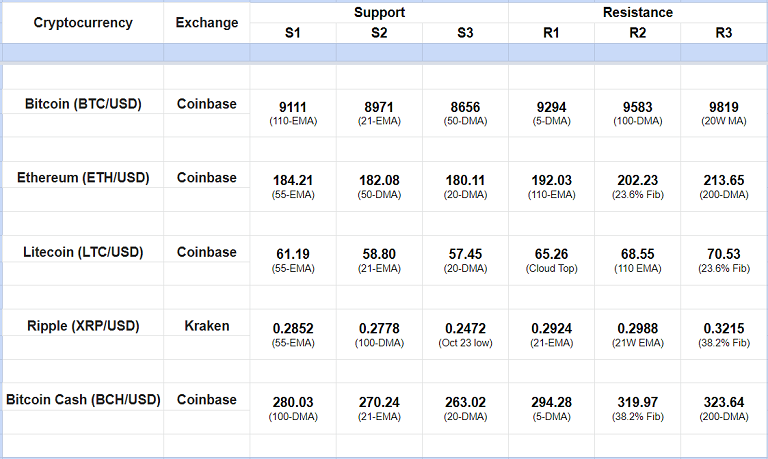 Major Cryptocurrency Intraday Support Resistance Levels
